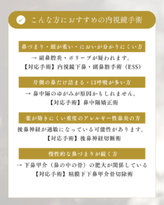 これらが重なると、鼻づまりが「常に」起こり、薬だけでは限界がくることがあります。